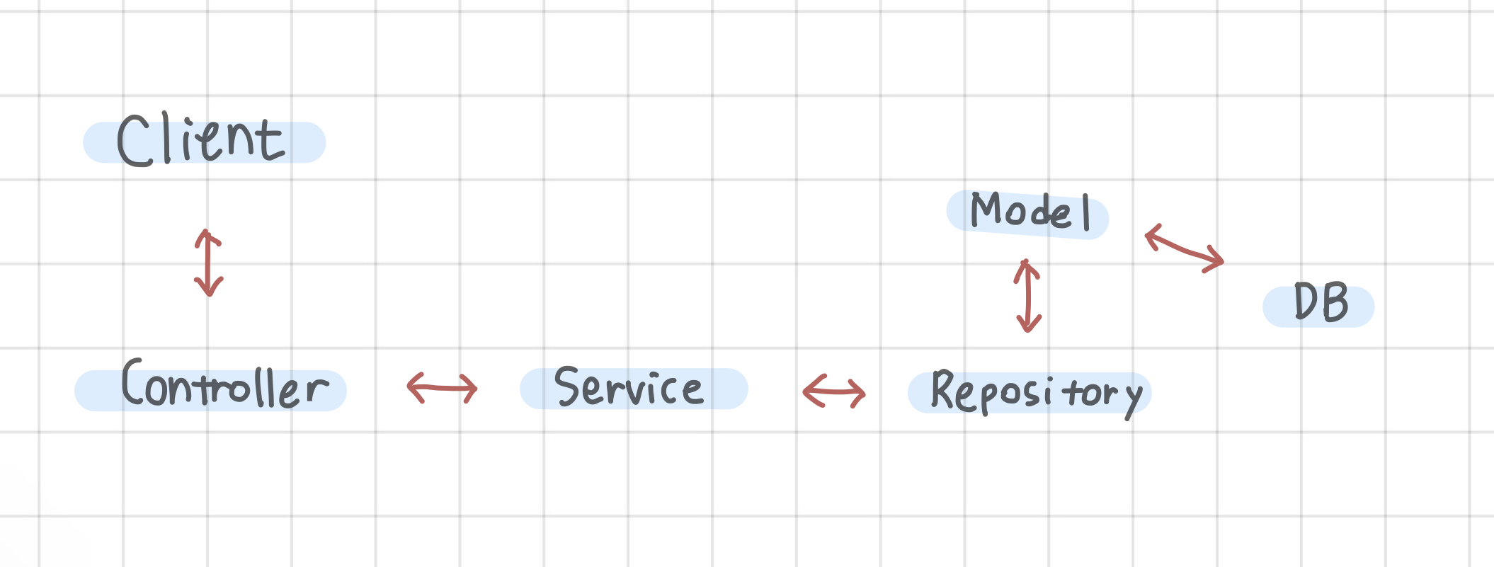[ Client -- Controller ๐๐ป Service ๐๐ป Repository -- DB ]