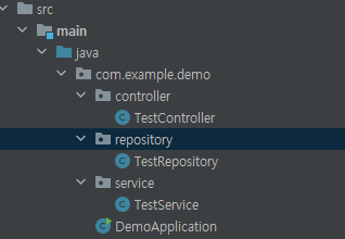 TestRepository에 화면에 출력할 TEST 문자열을 반환해주는 find() 메서드를 정의해준다.